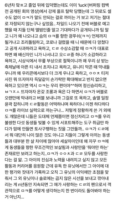 양심있으면 니들 단체활동할때 제일 열심히하고 멱살잡고 캐리한 애 응원은 못해줄 망정 욕은 하지마라