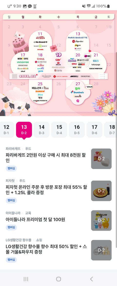 유플러스는 아웃백 할인 없어서 아쉬웠는데