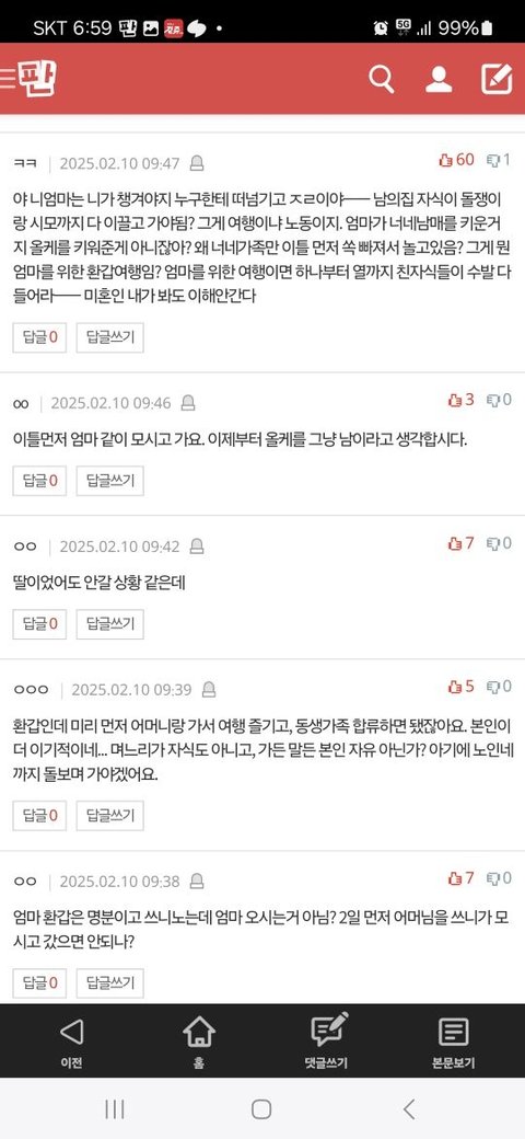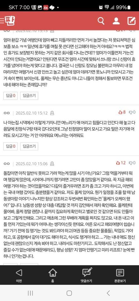 남동생네가 엄마 모시고 이틀 뒤 합류하는 걸로