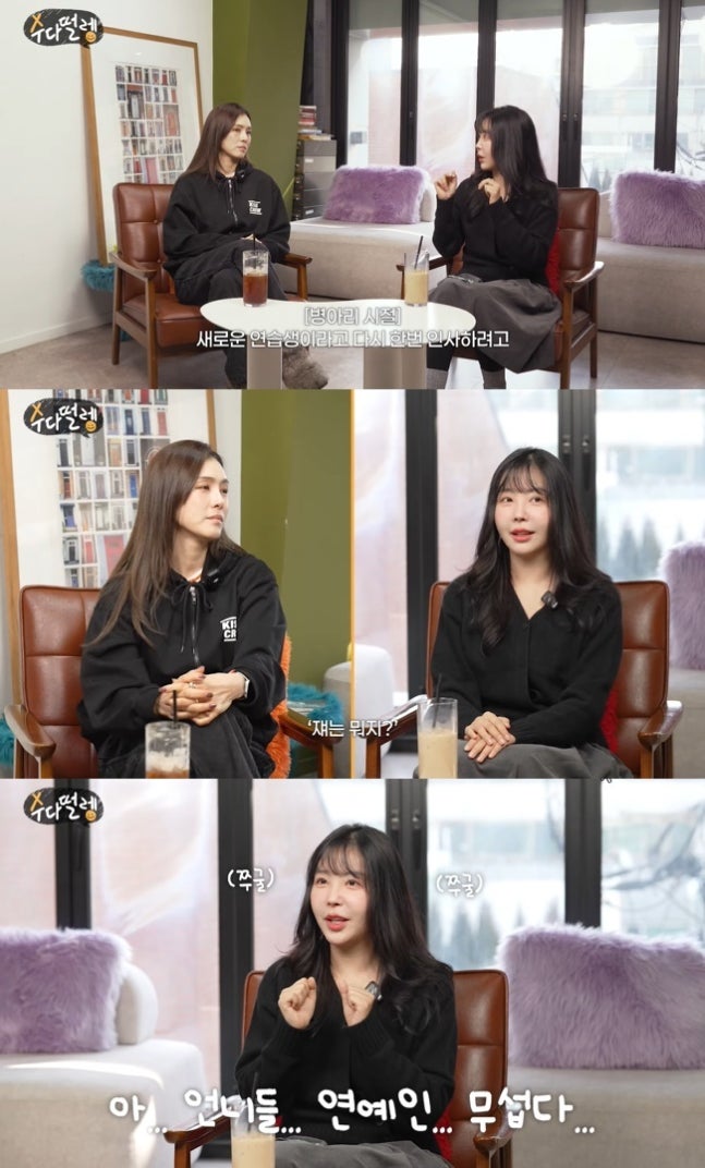 레이나는 “‘연예인 언니들 무섭다’라고 생각했다. 처음 목도한 게 연습실도 아니고 다 아이라인에 가죽을 입고 있으니까. 서운함보다는 ‘우와 연예인이다’ 이런 느낌이 있었다. 좀 어렵긴 했다. ‘저분들이랑 내가 멤버를 해야하는데 너무 연예인인데? 조금 어렵다. 잘해봐야지’ 이런 느낌이었다”라고 말했다.