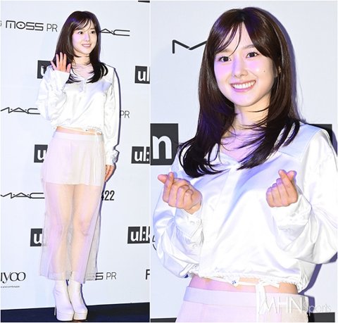 이날 이혜성은 광택이 도는 실키한 소재의 크롭 셔츠와 시스루 롱스커트로 등장했다. 특히 허리라인이 드러난 짧은 셔츠와 플랫폼 힐 부츠에 안감이 짧은 시스루 스커트는 은은하게 각선미를 드러내며 섹시미를 강조했다.
