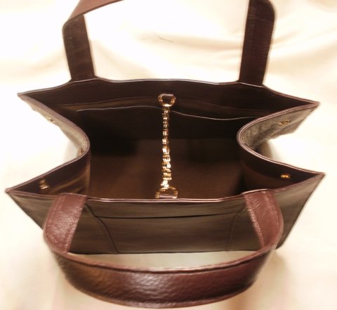 다크 브라운 컬러 부드러운 엠보싱 천연 가죽으로 제작한 토트 백입니다.(마디샤)
