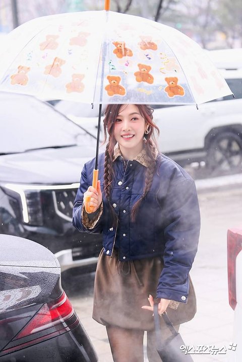 이날 녹화에 참석한 레드벨벳 조이가 출근길에 포즈를 취하고 있다.