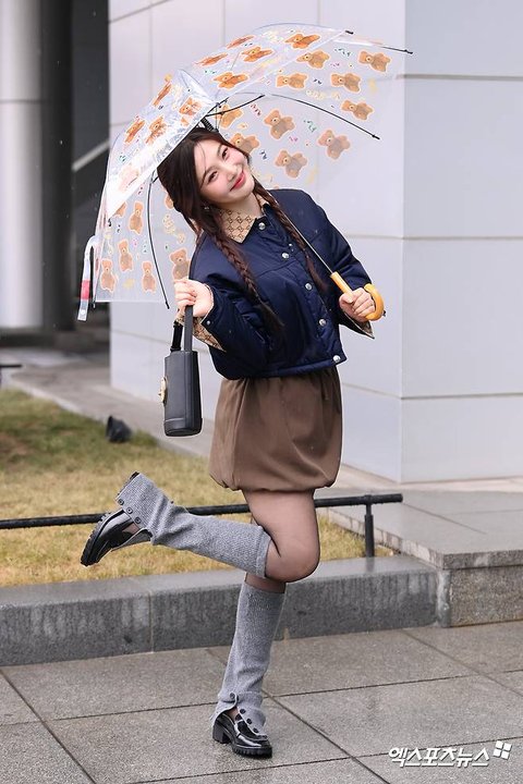 이날 녹화에 참석한 레드벨벳 조이가 출근길에 포즈를 취하고 있다.