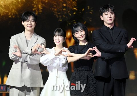 [마이데일리 = 송일섭 기자] 배우 최우식, 박보영, 전소니, 이준영(왼쪽부터)이 12일 오전 서울 동대문 JW메리어트호텔에서 진행된 넷플릭스 시리즈 '멜로무비' (극본 이나은, 연출 오충환) 제작발표회에서 포토타임을 갖고 있다.