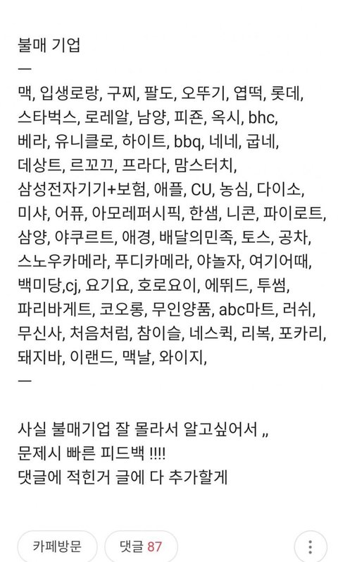 빼애애애액 여혐기업 불매하자노