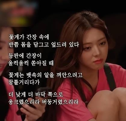 근데 그 유명한 간장 게장 시 듣고 운 적 있는 유나ㅜㅜㅜㅋㅋㅋ쿠쿸ㅋㅋ쿸ㅋ쿸