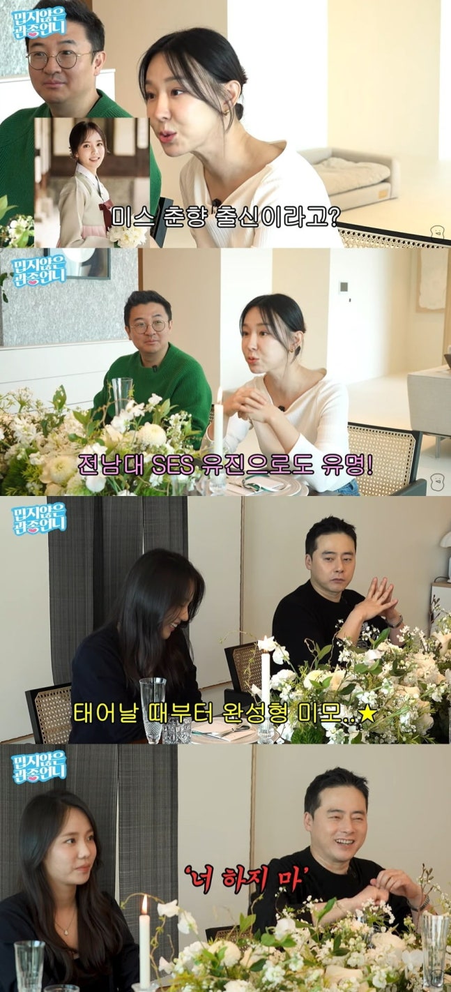 최선정을 만난 이지혜는 "어린이집에서 보면 눈에 띌 정도로 너무 예쁘고 참한 느낌이다"며 "미스 춘향 출신이라고 들었다. 전남대 SES 유진으로 유명했다고 하던데, 또 배우도 잠깐 하지 않았냐"고 물었다.