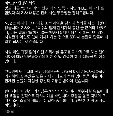 텐아시아는 사실 확인을 위해 바나에 여러 차례 연락했지만 바나는 응답하지 않았다.