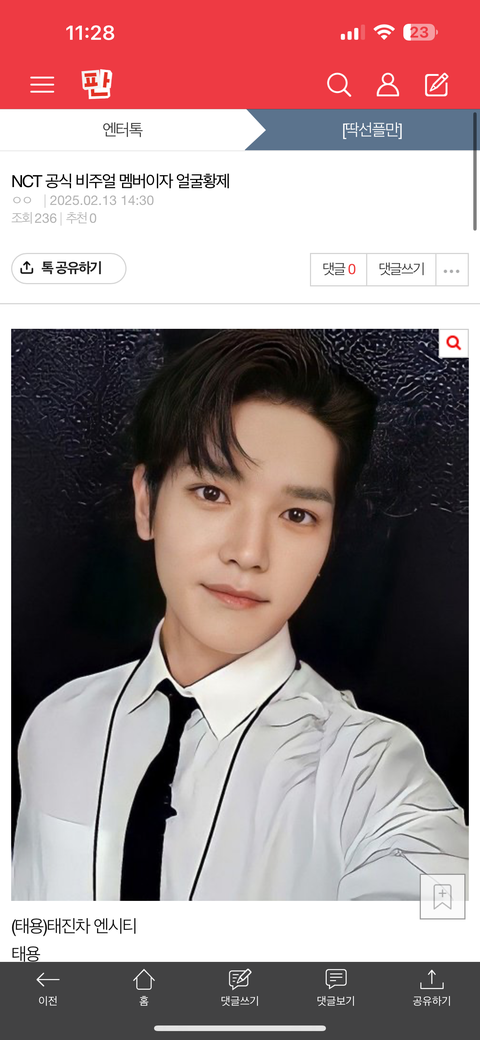 1. NCT 공식 비주얼 멤버이자 얼굴황제글에 찾아서 추천 많이 누르기