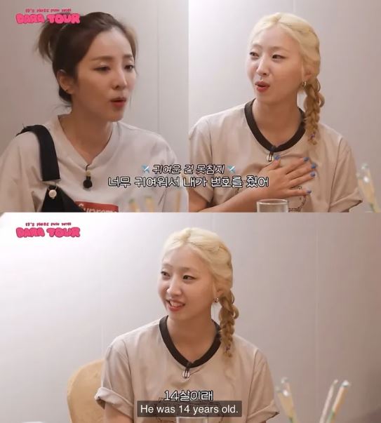 산다라박은 "한 남성이 다가와서 내게 번호를 물어봤다"며 "너무 귀여워서 번호를 줬는데 14살이라고 하더라"라고 에피소드를 풀어놨다.