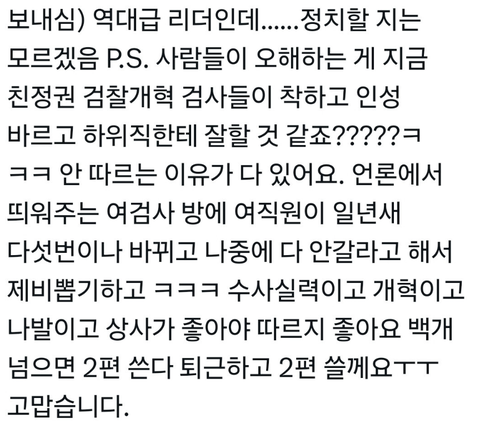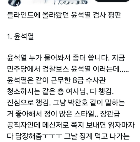 블라인드에 올라온 윤석열 검사 평판