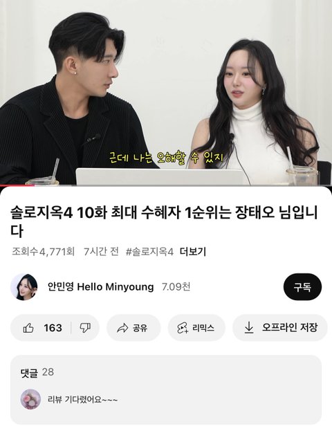 안민영 솔로지옥 리뷰보는데 먼가 얼굴이 보정한 거 같은거임