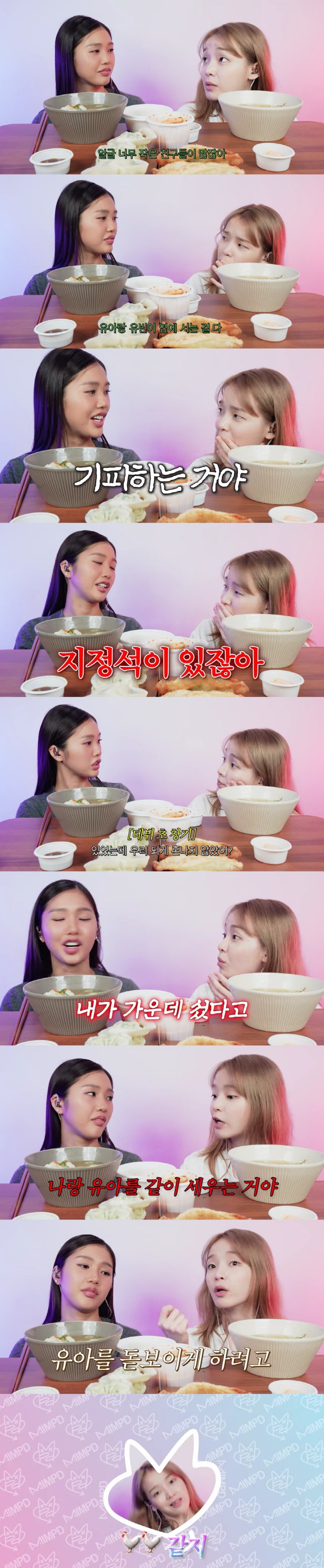 이어 승희는 "우리 그룹에 얼굴 작은 애들이 너무 많지 않냐. 그래서 애들이 어느순간부터 유아랑 유빈이 옆에 서는 걸 기피하더라"라고 이야기했다.미미는 "우리 지정석이 있었다. 나는 늘 유아 옆에 서야 했다. 오른쪽이 나였다. 그래서 난 그냥 일찌감치 받아들였다"라고 덧붙였다.