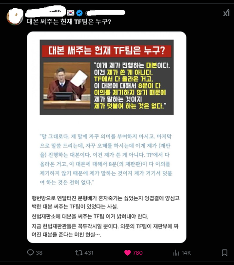 그러나 이는 법적 검토, 자료 준비, 발표 지원을 위한 행정적 역할일 뿐, 판결 내용이나 결론을 사전에 정리하는 대본 작성은 금지되어 있음
