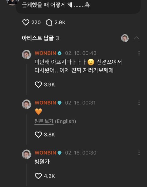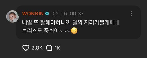 자러 간다 하고 신경 쓰여서 다시 왔대ㅠ