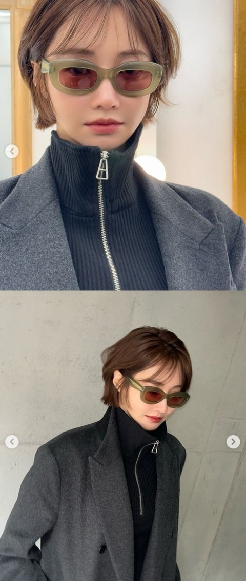사진 속 고준희는 집업 니트 위에 코트를 걸쳐 시크한 룩을 완성했다. 고준희는 그린 컬러의 선글라스를 써서 포인트를 줬다.