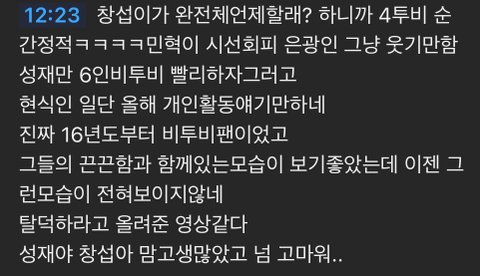 23년에 창섭/육/나머지4인 소속사 나눠졌고 4인은 레이블로 따로 만들어진소속 24년11월 섭솔로콘서트 전국투어로 예매가 끝났고 연말도 콘서트예정 24년11월말쯤 갑자기 4인소속사에서 연말콘서트한다고공지 난데없는 겹콘에 올팬들 무슨일인건지 공지원하는데 겹콘왜했는지는 안알려주고 자기들은 4인을 중심으로 운영한다고공지 여기서 둘배척하는거냐고 말나옴 그후 멜3봉이 나왔는데 섭/육 두쪽다 공적으로나 사적으로 아무언급없고 4인소속사만 언급하고 컨텐츠도 올림 팬들 또 이거 멜봉이냐 md냐 물어보는데 또 공지안함 25년 이번엔 멜로디제팬을 난데없이 6인꺼에서 4인껄로 변경. 한국팬뿐아니라 일본에서도 말나옴. 하도 말이나오니 늦게나마 남은2인때문에 가입한 팬들은 환불해줌. 도저히 행보가 이상해서 공론화 하려다가 멤버들 타격심할까봐 올팬들 선에서 메일총공보내기로함 그렇게 시간지나다 몇일전 비컴유튜브에 영상이 올라왔는데 겹콘피해로 피해볼뻔한 섭이 좀더 대화를 하겠다 해명하고 힘들게 지방서 촬영하다 휴일날 소환된 육이 정리하고 4인은 눈치보는건지 대면함 여태까지 솔로 더하겠다고 나갔냐고 욕먹던 둘이 완전체 언제할꺼냐 비투비홀 만들까 논의하고 4명은 되려 나서질않고 솔로먼저를 말하는데다가 겹콘을 한쪽이 하면안될말을해서 더 난리남. 멤버 예전 말실수까지 파묘됨. 소속사는 고깃집이 ppl이라서 그런지 아직도 영상을 안내림. 그후 총공팀은 멤버앞세우지말고 소속사가 해명하라고 4차메일총공. 추후6차까지 진행예정.