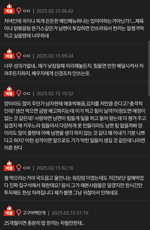 대체 뭐 어떻길래 댓글이 남편 불쌍하다고 하나요