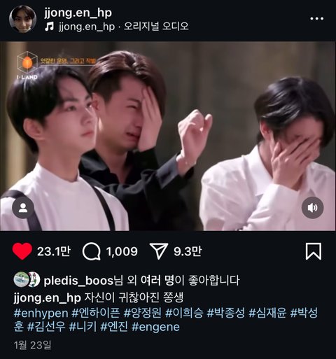 부승관 이영지가 엔하이픈 제이 아이랜드 오열영상 좋아요 누름
