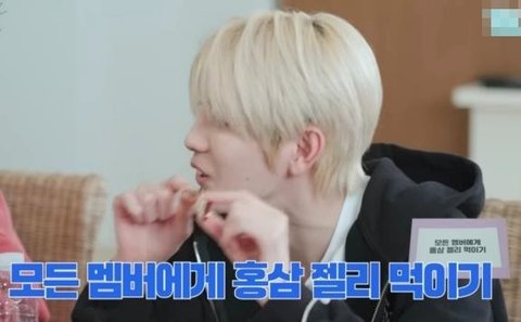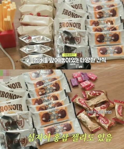 촬영장에 과자들 여러 개 있는데 와중에 홍삼젤리... 이것 뭐예요.....