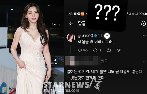 성우 겸 방송인 서유리가 배우 고(故) 김새론을 추모했다가 악플 공격을 받았다.서유리는 17일 자신의 SNS에 "???"라는 글과 함께 자신을 향한 악플이 담긴 사진을 박제했다.