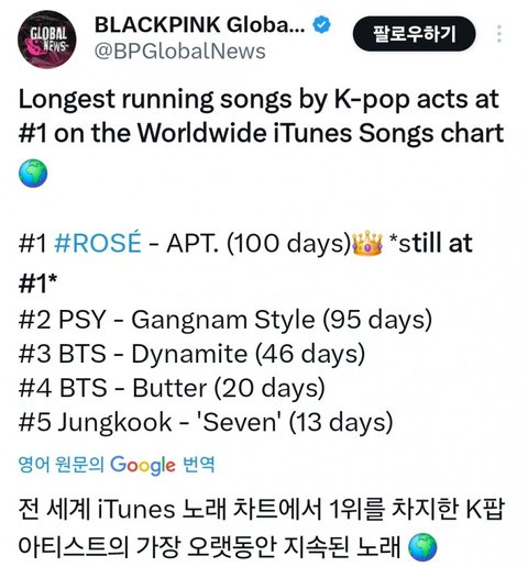 제니 이름 들어가는 곡은 다 성공하나봐