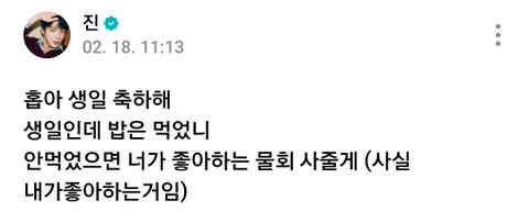 호비 오라버니 석진 오라버니가 물회 먹고 싶대요