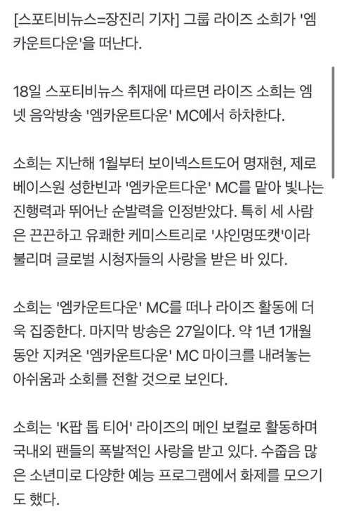 라이즈 소희 엠카 엠씨 그만한대