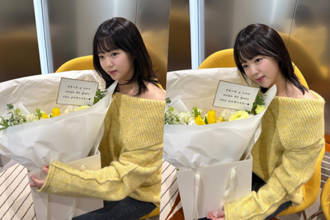 18일 지예은은 별다른 멘트 없이 두 장의 사진을 올려 팬들에게 근황을 전했다. 공개된 사진 속 지예은은 따뜻한 분위기의 실내에서 커다란 꽃다발을 품에 안고 포즈를 취하고 있다. 특히 노란 니트와 사랑스러운 미소가 어우러져 더욱 귀여운 분위기를 자아냈다.