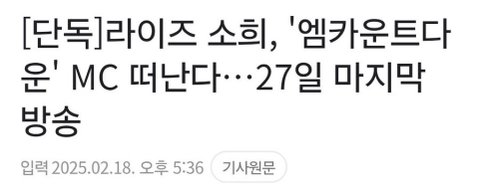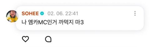 5주동안 안나오던데 이제 하차한다네.. 일방적 스엠 통보인것같은데 소희도 2주전까지만해도 엠카엠씨인 거 까먹지말라고 위버스 올렸다던데ㅠ 샤인멍또캣 못잃어… 케미 좋았는데