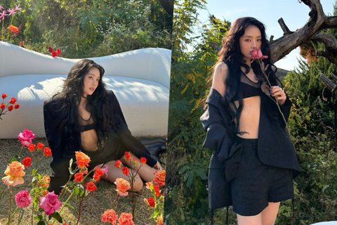 장미꽃을 손에 든 채 몽환적인 분위기를 연출한 모습과 야외 소파에 걸터앉아 카리스마를 발산하는 컷은 패션 화보 그 자체였다. 자연광을 활용한 연출이 민니의 오묘한 매력을 더욱 극대화했다.
