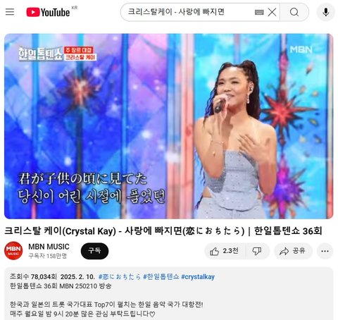 (사진3 설명) 크리스탈 케이(Crystal Kay) - 사랑에 빠지면(恋におちたら)|한일톱텐쇼 36회