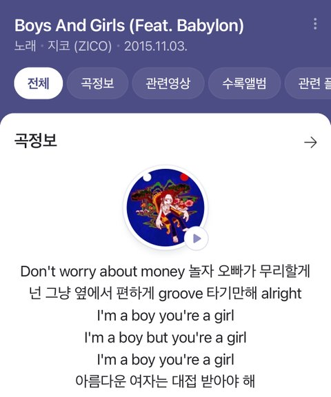 추)가수 빼고 노래만 봤을 때는 신나고 좋지 않나...? 저 노래 당시에 Mega Hit 쳤을걸..? 저때 지코 대중성도 장난 ㅇ니었어.