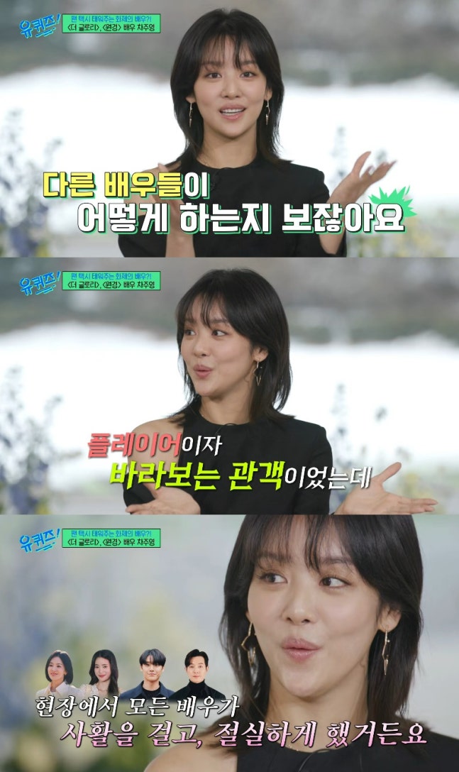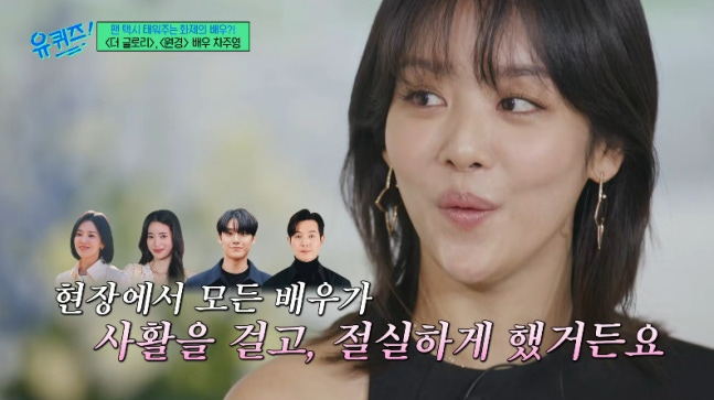 MC 유재석이 차주영의 필모그래피를 말하며 "'더 글로리'가 잘 될 줄 알았냐"라고 묻자 차주영은 "잘 될 줄 알았다"라고 말했다. 그 이유로 차주영은 "너무 재밌었고 어떻게 하는지 제가 보잖나. 제가 플레이어이자 바라보는 관객이었는데 현장에서 저희는 다 사활을 걸고 절실하게 했다"라고 밝혔다.