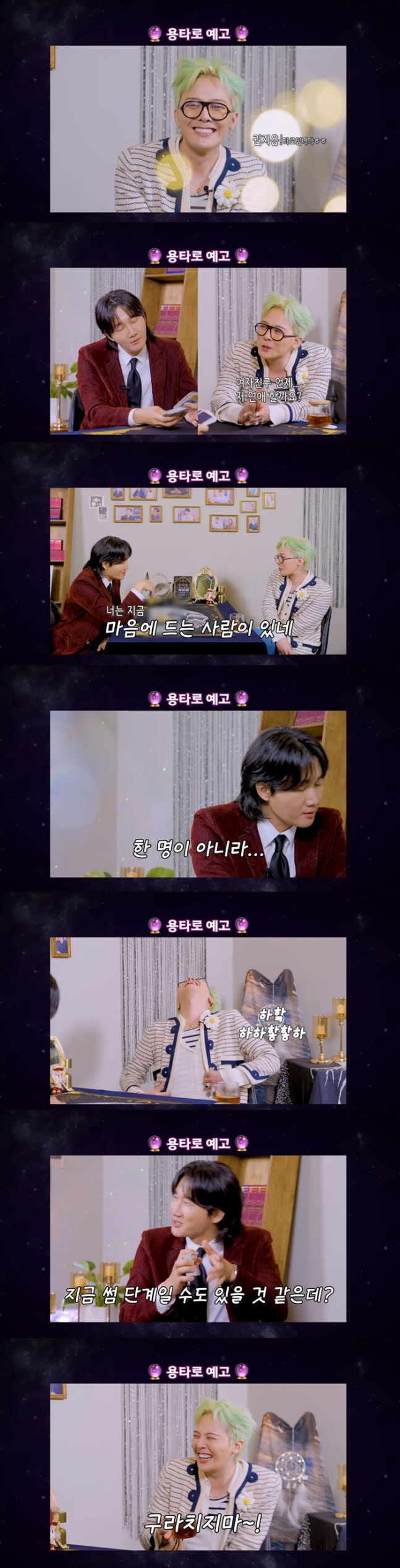 이에 지드래곤의 연애에 대한 타로를 해석하던 이용진은 "지금 네가 마음에 든 사람이 하나 있네"라는 폭탄 발언을 한다.