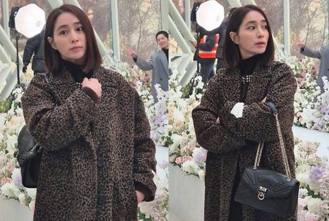 공개된 사진 속 이민정은 강렬한 호피 무늬 코트를 걸친 채 우아한 분위기를 자아냈다. 블랙 터틀넥과 골드 포인트의 체인백을 더해 클래식하면서도 고급스러운 하객룩을 완성했다.