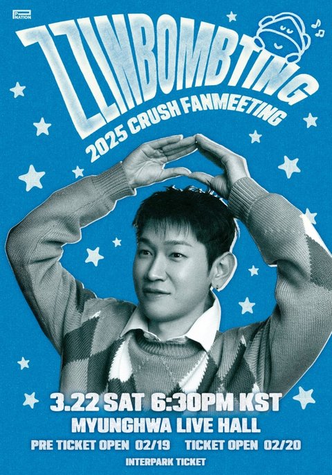 크러쉬는 오는 3월 22일 서울 명화 라이브홀에서 '2025 FAN MEETING ZZINBOMBTING'(이하 '찐밤팅')을 개최한다.