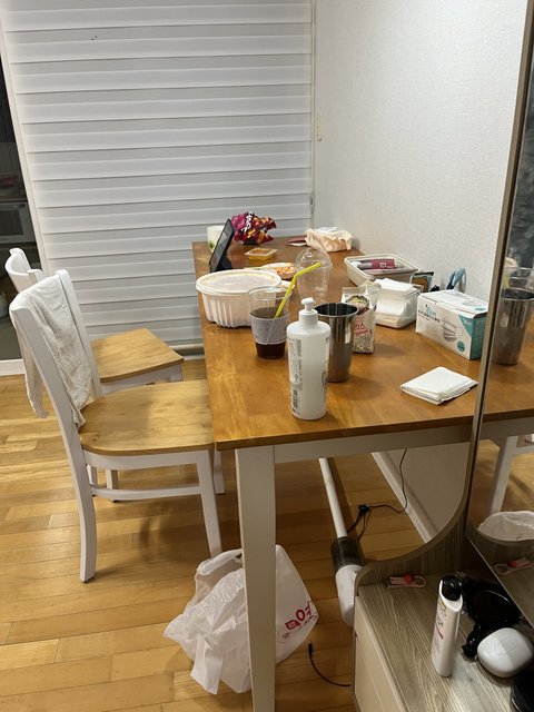 옷은 늘 허물벗듯 벗어 거실 땅에 내려두고, 먹은것은 늘 그대로 둡니다.