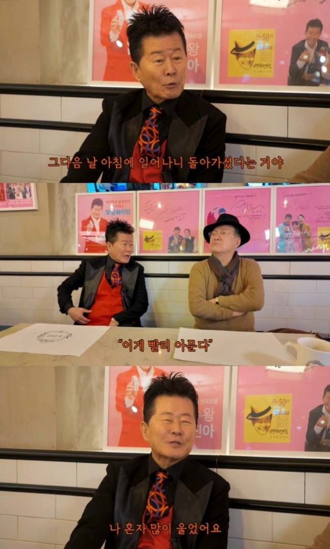 태진아가 운영 중인 카페를 방문한 노주현은 “이번에 애 많이 썼다. (송대관 장례 치르느라) 애썼다. 속으로 ‘태진아 훌륭하다’ 많이 생각했다. 애썼다. 그렇게 하기 어렵다”라고 태진아의 손을 잡고 위로했다.