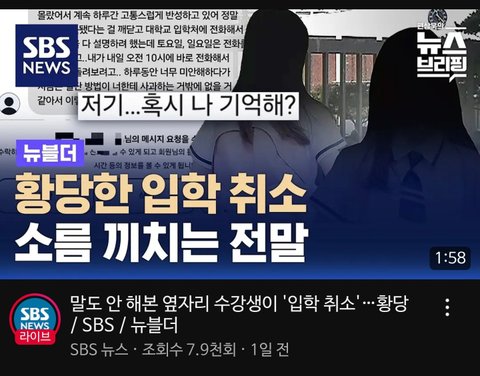 이거봄??sbs친구 개인정보로 대학 입학 취소ㅋㅋㅋㅋ