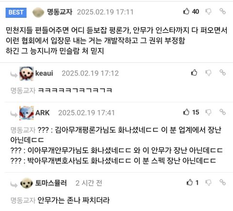 저기 남초 펨코잖아ㅋ 일베2중대 버러지들 오지게 모여있고 수시로 여론 바뀜 그냥 병신들 모임이라 저기 보고 여론향방 판단불가 저기는 의미가 없음 저기서 빨아주는게 이준석인데 ㅎ 이준석 지지율 봐 의미가 없는 수준이잖아? 펨코에서 이러니 저러니 해도 신경쓸건덕지가 없음 그리고 유튜브가 사실 제일 여론을 정확히 알수 있는데 왜냐면 펨코도 국내 2위 커뮤라도 게시글 얼마 안되고 댓글도 많아야 100개 내외인데 유튜브는 뉴스영상등 자료 훨씬 많고 댓글수도 훨씬 많은데 아직도 뉴진스 여론 우세함 지금 대중관심이 줄어서 하이브 단월드 알바들이 몰려들어서 작업치니까 여론이 일부 뒤집힌듯 보이는 착시현상이고 다시 핫이슈 되면 뉴진스 민희쪽에 압도적일거임