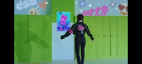 무려 "캠코더"버전으로 뮤직비디오도 찍고 나비집게핀, 머리끈, 이모티콘, 픽셀모양 말풍선, 다이어리 등 y2k요소 들어감