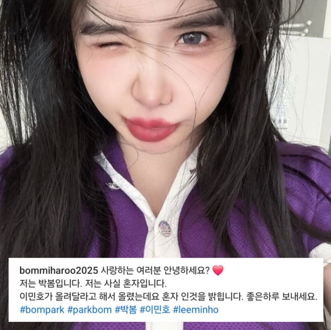 박봄은 지난 20일에도 자신의 인스타그램 부계정을 통해 의도를 알 수 없는 글을 올려 화제를 모았다. 박봄은 그간 이민호와 열애설을 주장해온 것과 달리 "저는 사실 혼자입니다"라며 "이민호가 올려달라고 해서 올렸는데 혼자인 것을 밝힙니다"라고 적었다.