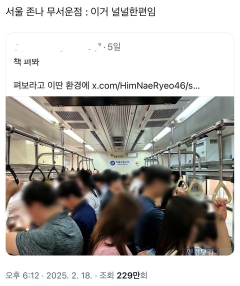 출퇴근 시간엔 저 정도만 되어도 쾌적하겠다 싶어ㅋ 저 정도면 엄청 양호하지