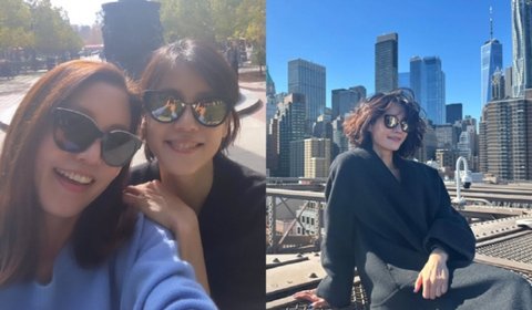 사진 속 김지호는 딸과 함께 뉴욕의 명소를 다니며 여행을 즐기고 있는 모습이다.