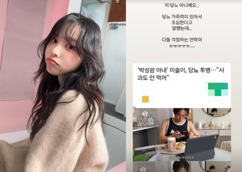 이솔이는 22일 자신의 기사를 캡쳐해 올리고 "저 당뇨 아니에요. 당뇨 가족력이 있어서 조심한다고 말했는데 다들 걱정하는 연락이"라며 "내가 아니라고 외쳐도 고요속의 외침일 것인 슬픈 현실"이라고 전했다.