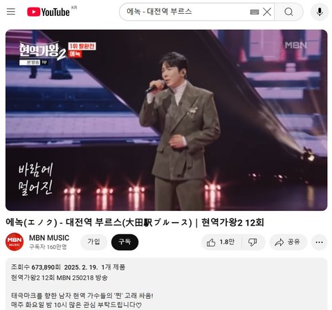 (사진2 설명) 에녹(エノク) - 대전역 부르스(大田駅ブルース)|현역가왕2 12회
