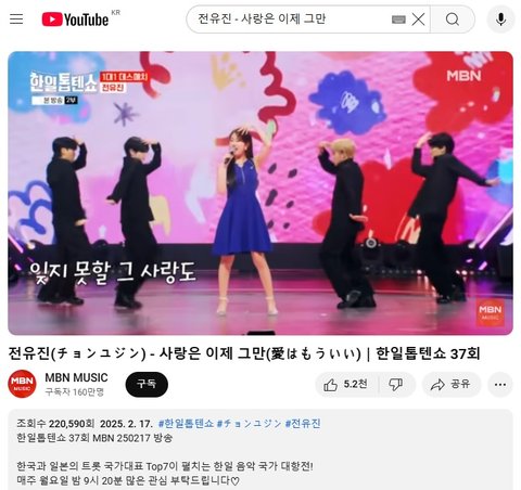 (사진3 설명) 전유진(チョンユジン) - 사랑은 이제 그만(愛はもういい)|한일톱텐쇼 37회