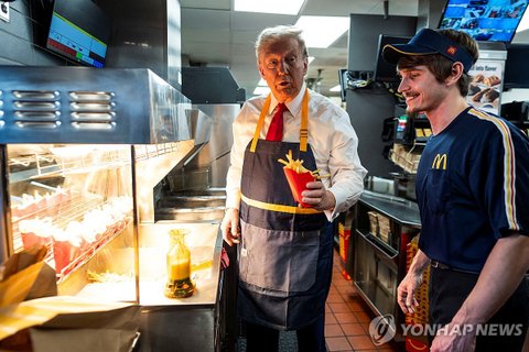 [펀글] 美경합주 맥도날드서 감자 튀긴 트럼프 "해리스는 일한 적 없다"(종합) - 연합뉴스 (2024.10.21 오전 08:17)